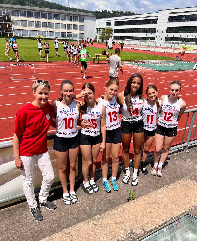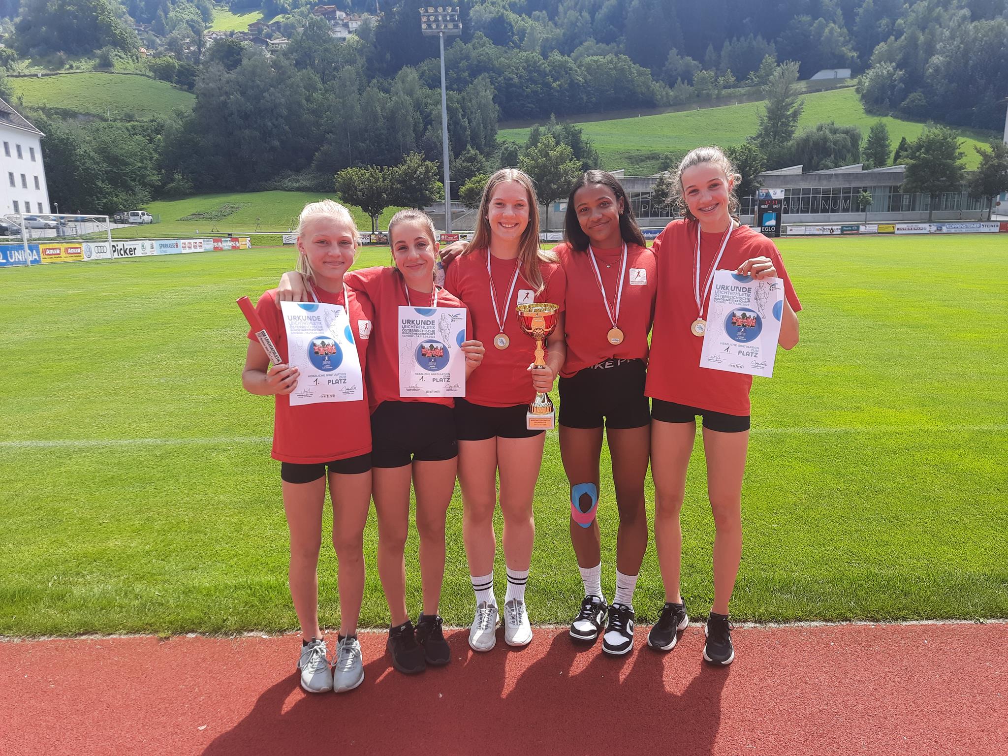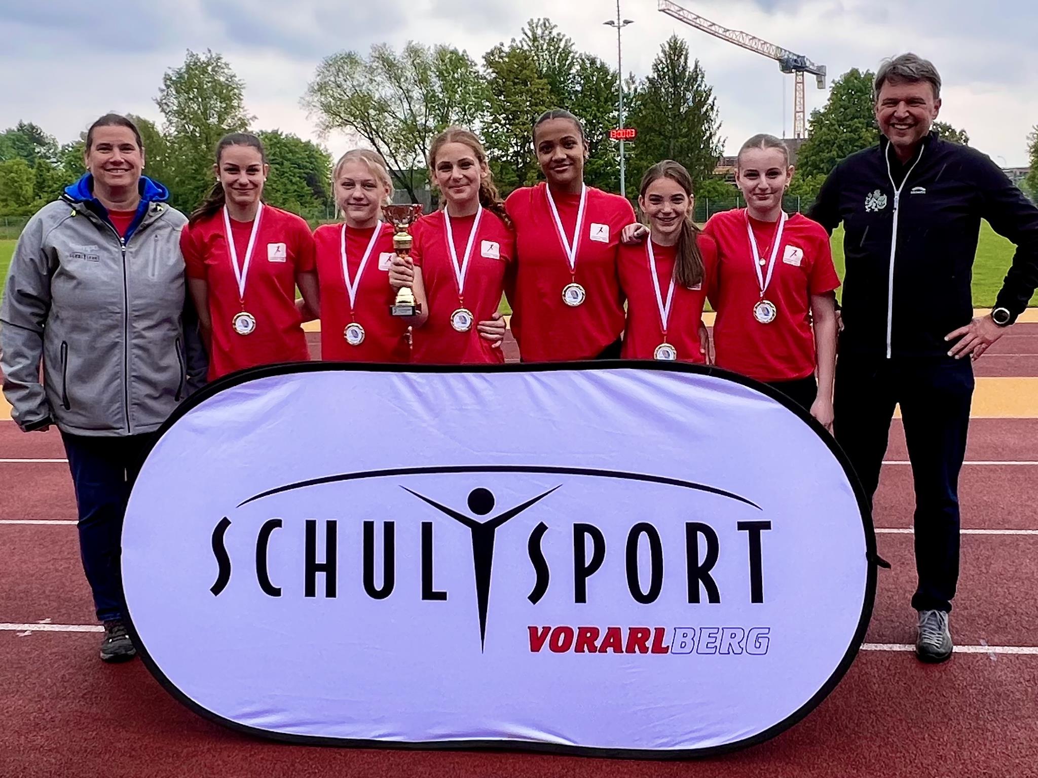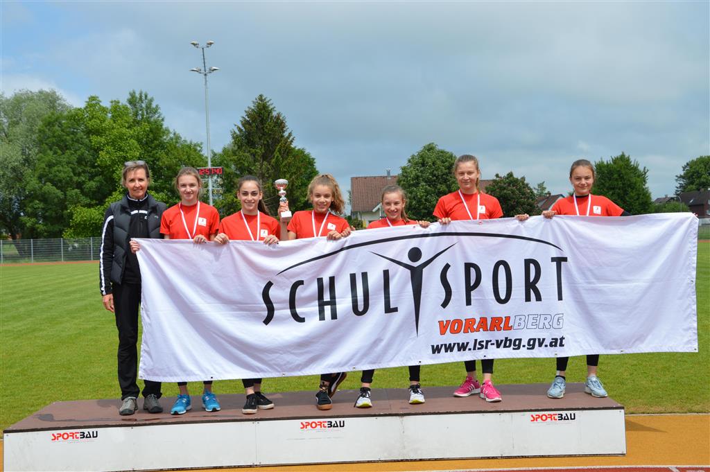 SMS Hohenems-Markt (Leichtathletik): Anna Lena Zerlauth, Katharina Grabherr, Lisa Schabmann, Savannah Gonner, Naomi Benneker, Magdalena Irgang – Betreuer Renate Moosmann – Platz 3