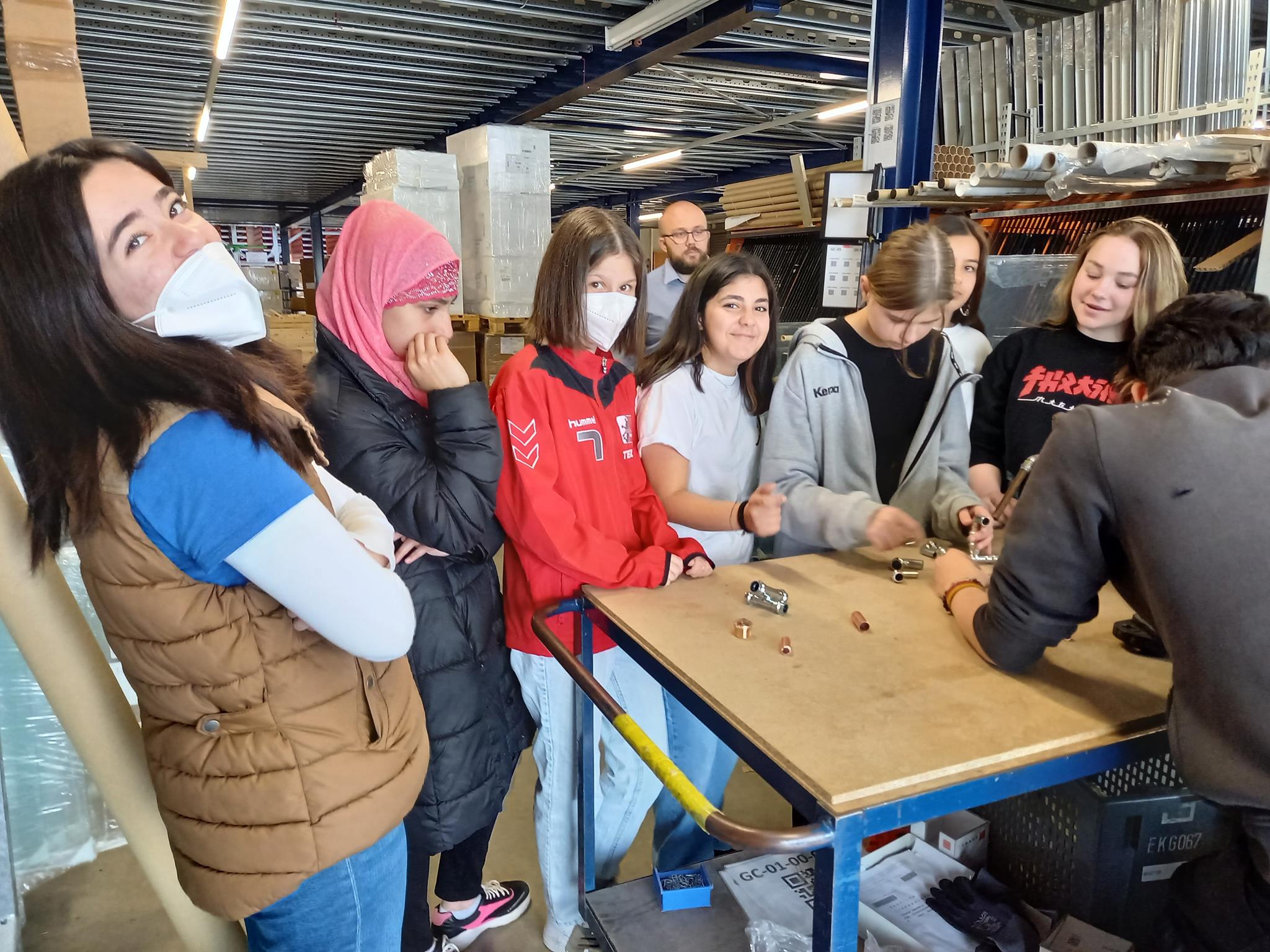 Für alle wurde ein Besuch der Lehrlingsmesse bei der Firma Blum organisiert. Außerdem standen die Bauakademie, die Firmen CCL Labels, Collini, Heron, Lercher Werkzeugbau, die Tischlerei Plattner und Tectum zur Auswahl. Je nach Interesse haben die Schüler/innen zwei dieser Betriebe besucht und spannende Einblicke in die Arbeitswelt erhalten.