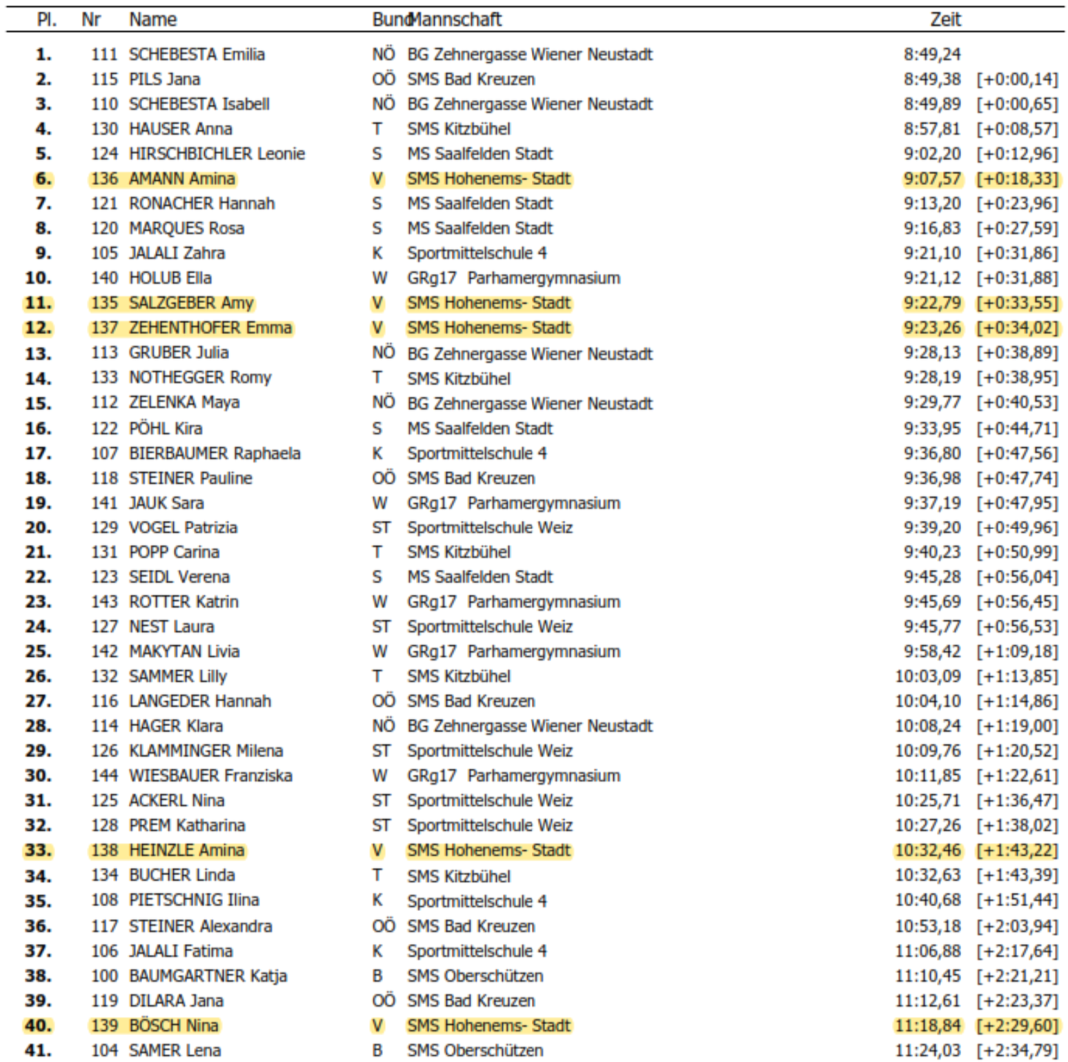 Mädchen: Ergül Lara, Pammer Michelle, Mathis Elena, Kobelt Anna, Lampert Noemi, Benneker Cheyenne, König Jessica, Marte Lina, Rief Lilia