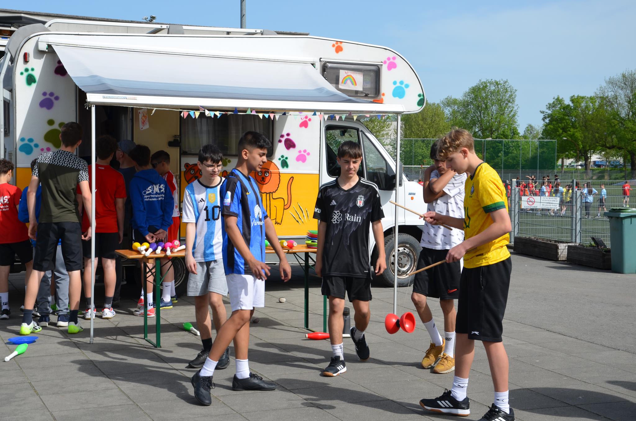 In den Wettkampfpausen standen Jonglierbälle und -keulen, sowie Ringe und Jonglierteller mit Holzstäben zur Verfügung, um die Auge-Hand-Koordination und das räumliche Denken zu trainieren. Dabei wird als Ausgleich zur körperlichen Leistung das Zusammenspiel beider Hirnhälften aktiviert.