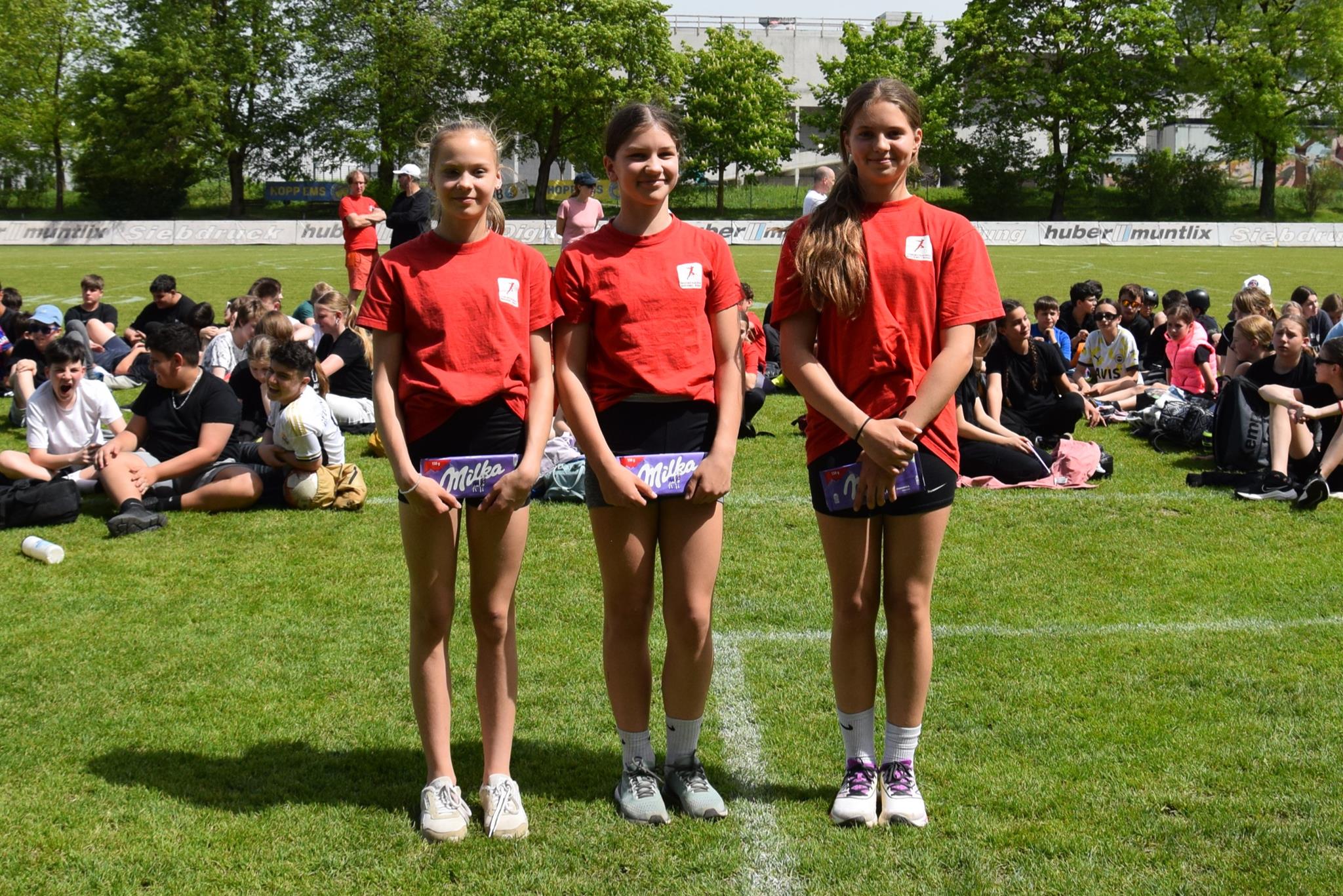 Alle 10 Mädchen mussten einen Dreikampf, bestehend aus 50m Lauf, Weitsprung und Schlagball, bestreiten.
