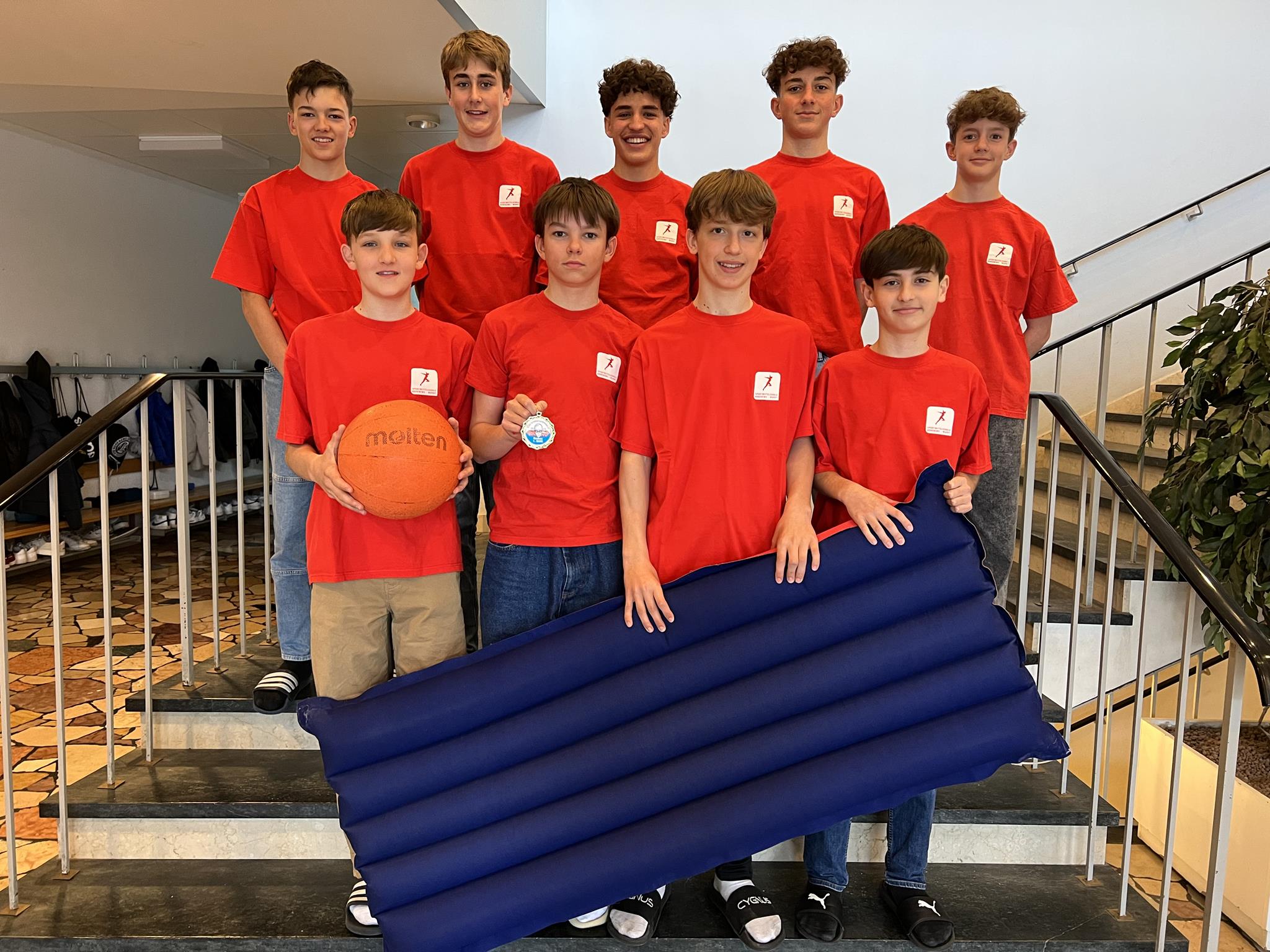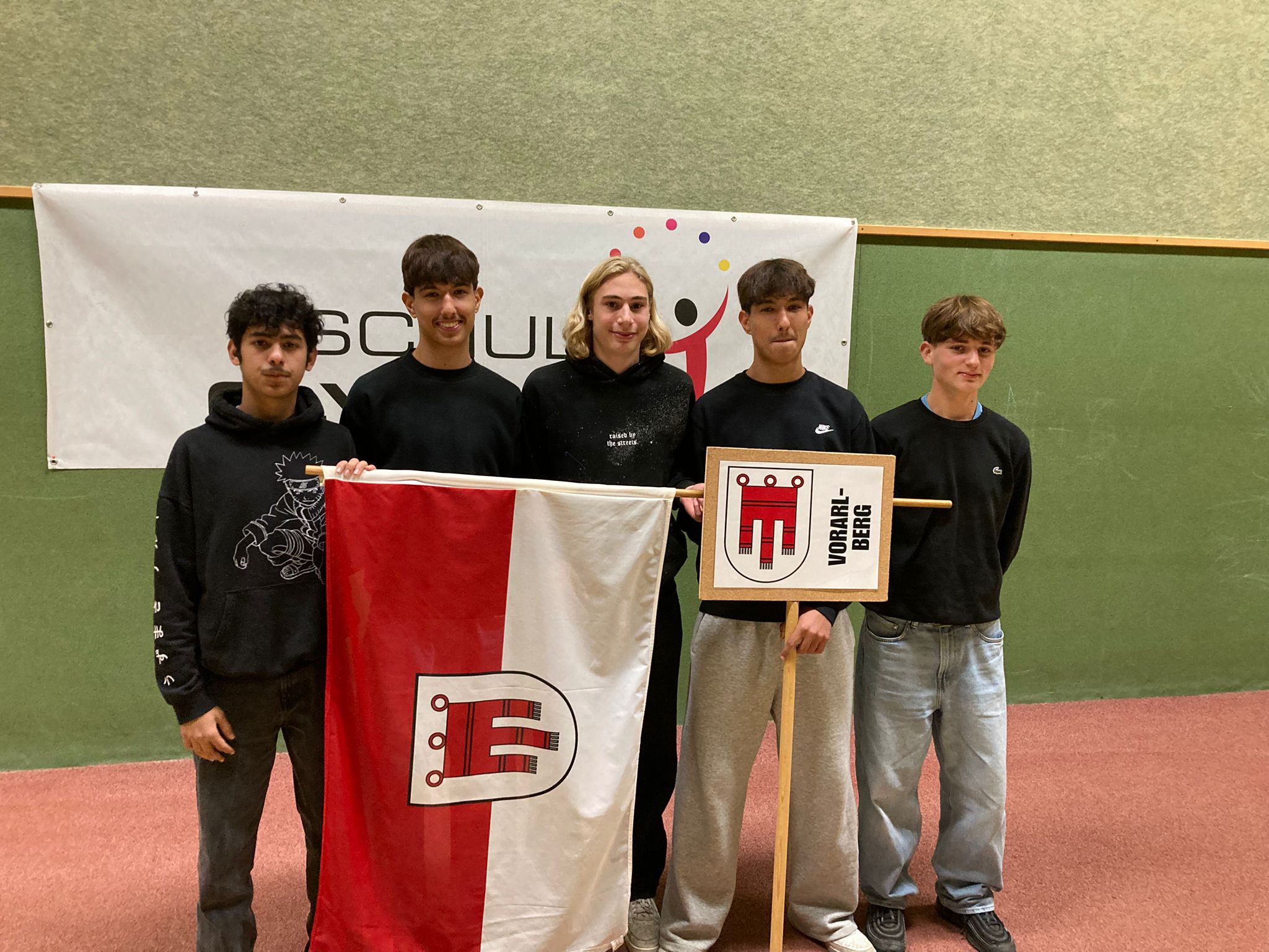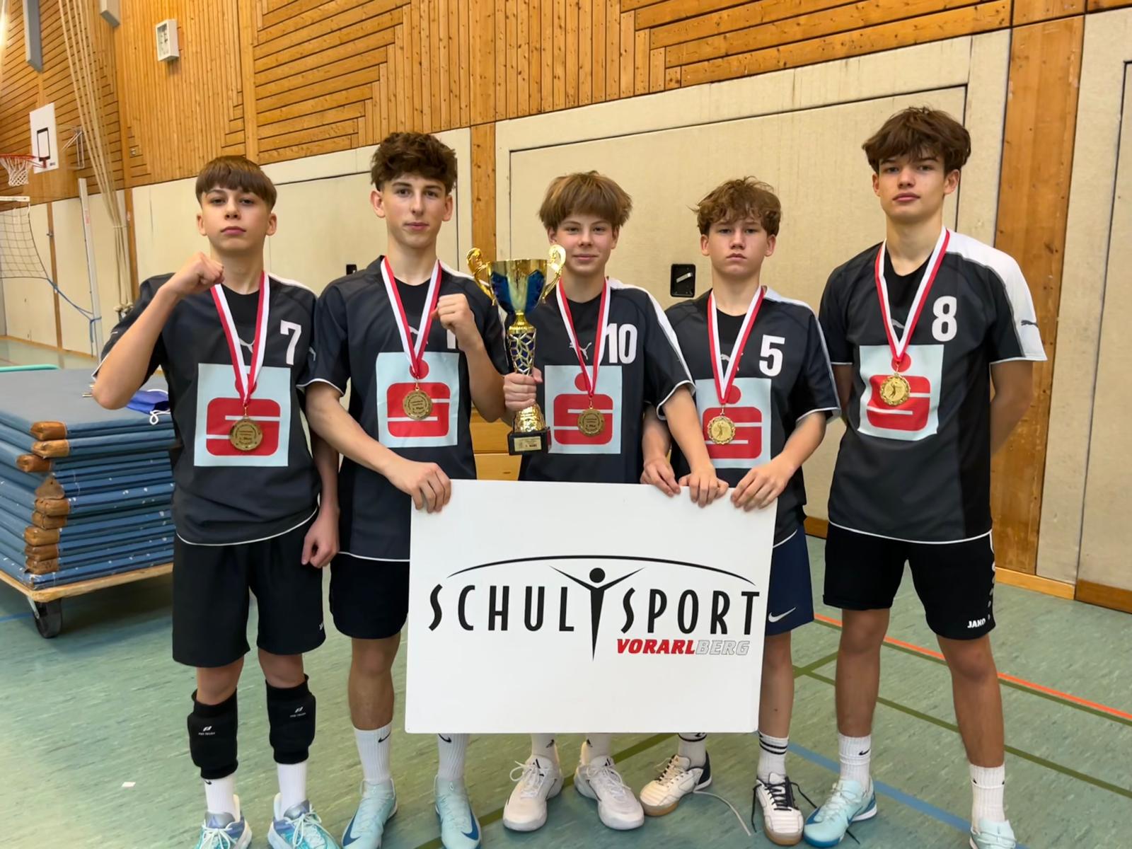 Unsere fünf ausdauernden Schüler haben am 3. März 2025 in der Hofsteighalle in Wolfurt den Landesmeistertitel der Schülerliga Volleyball errungen. In der Gruppenphase setzten sie sich souverän in drei Spielen durch und zogen damit ins Halbfinale ein. Dort trafen sie auf die Mannschaft der Mittelschule Wolfurt, die sie in einem spannenden Match besiegten. Im Finale standen sie der Mittelschule Egg gegenüber und sicherten sich nach einem lebhaften Duell den Titel. Mit beeindruckendem Teamgeist und Einsatz haben sie sich gegen starke Gegner durchgesetzt und sich für das Bundesfinale qualifiziert.