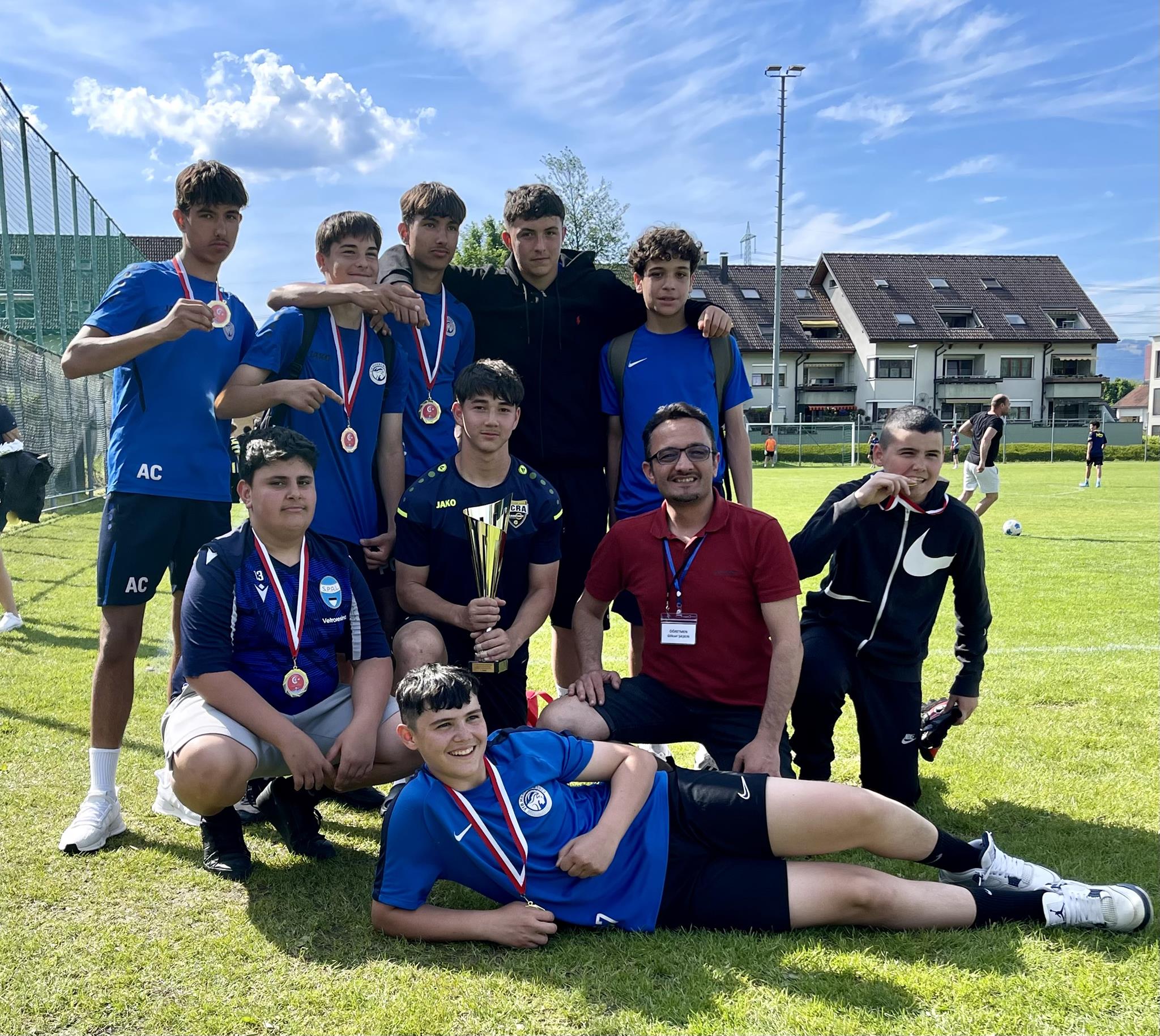 Das Turnier verlief in der Gruppe mit fünf Mannschaften optimal und sicherte uns aus den vier Siegen den 1. Platz mit einem Torverhältnis von 15:1. Im Halbfinale traten die Kicker aus Hohenems gegen die BG Lustenau an. Das Spiele wurde von unseren Jungs klar dominiert und einige Hochkaräter wurden nicht genutzt. Das Spiel endete mit einem 0:0. Anschließend behielten die Jungs aus BG Lustenau, die schließlich auch das Turnier für sich entscheiden konnten, die Nerven und gewannen das Elferschießen knapp mit 5:4. Das kleine Finale um den 3. Platz entschieden wir mit einem ungefährdeten 2:0-Sieg für uns.