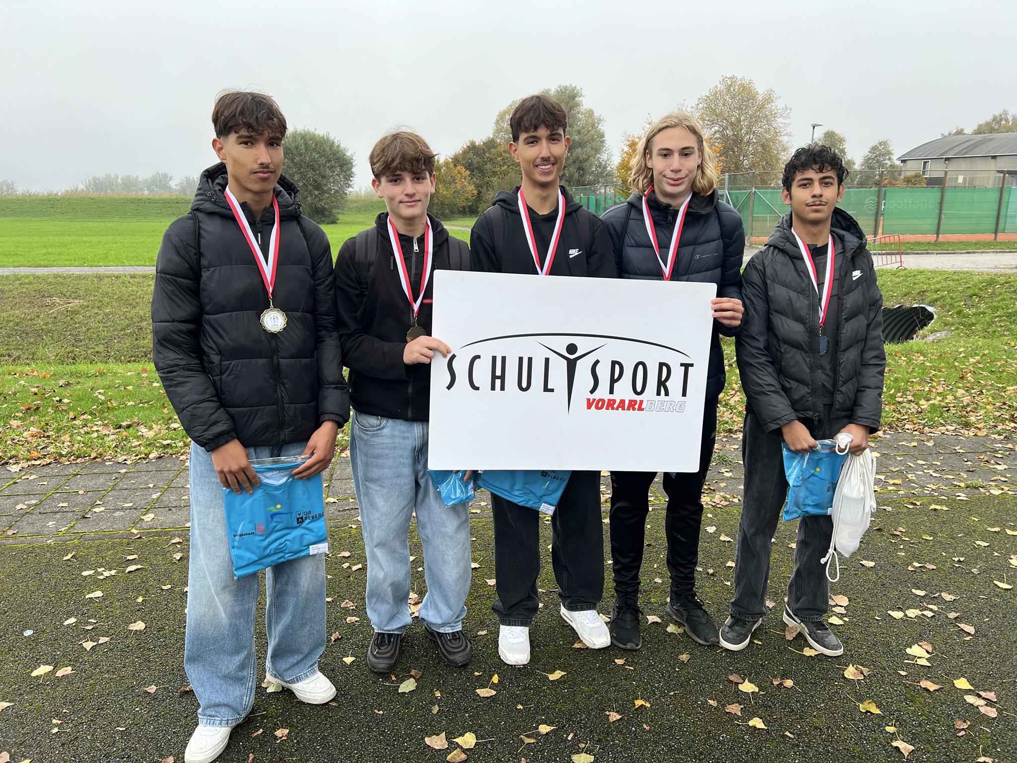 Zum Abschluss liefen die Jungs der Sportklassen, auch hier war die Konkurrenz sehr groß. Kilian, Julian, Benedikt Sch., Linus und Benedikt L. belegten hinter der SMS Rankweil den ausgezeichneten 2. Platz.