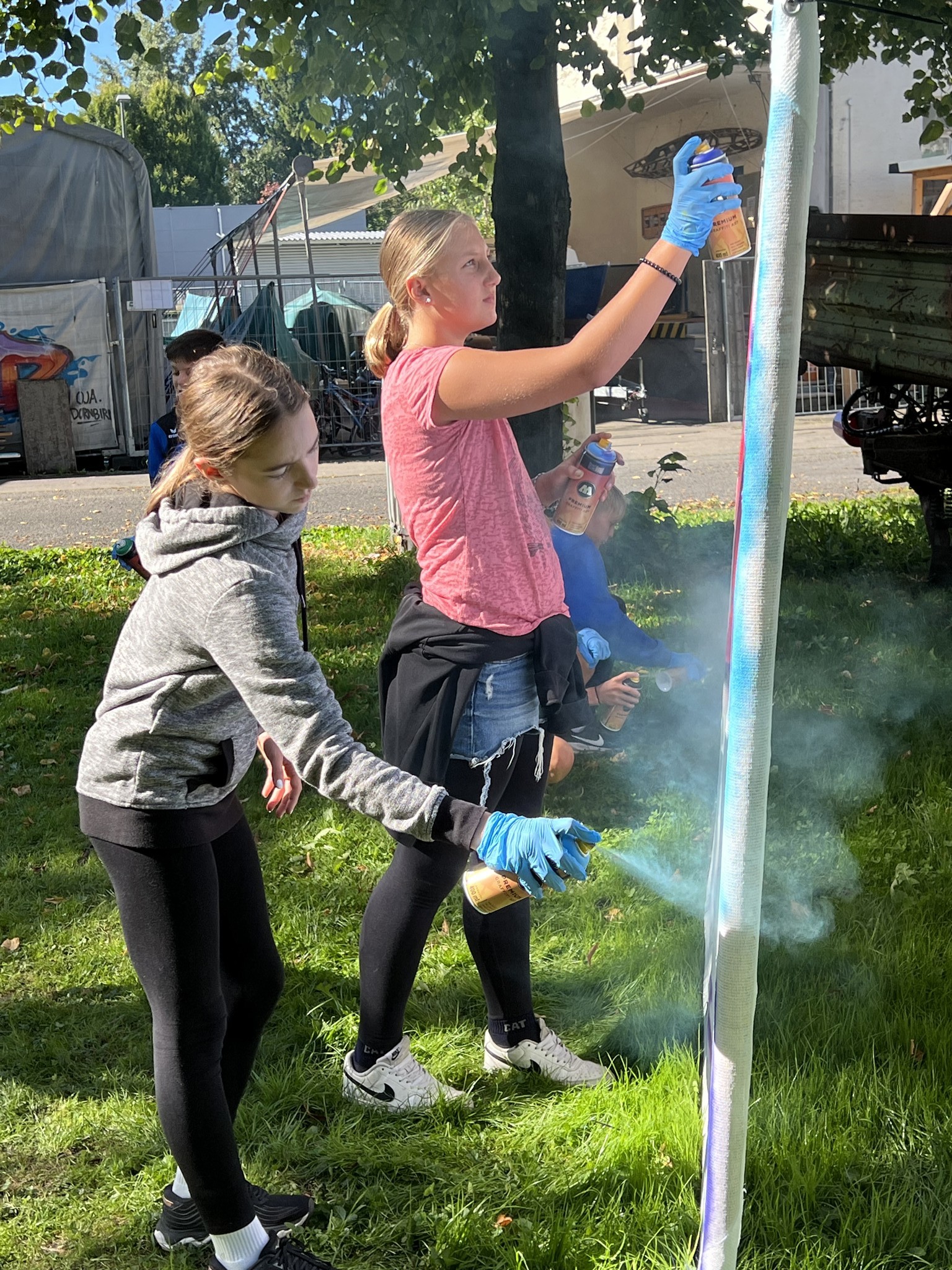 Die andere Gruppe bekam von einem Graffiti-Künstler erste Tipps fürs Sprayen. Anschließend durften wir unser eigenes Plakat sprayen und konnten uns mit den Farben richtig austoben. Schließlich wurden die Stationen gewechselt.