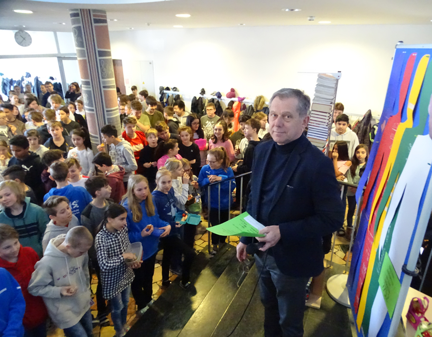 Schüler der Mittelschule Markt „erlasen“ 4½ mal die Körpergröße ihres Direktors